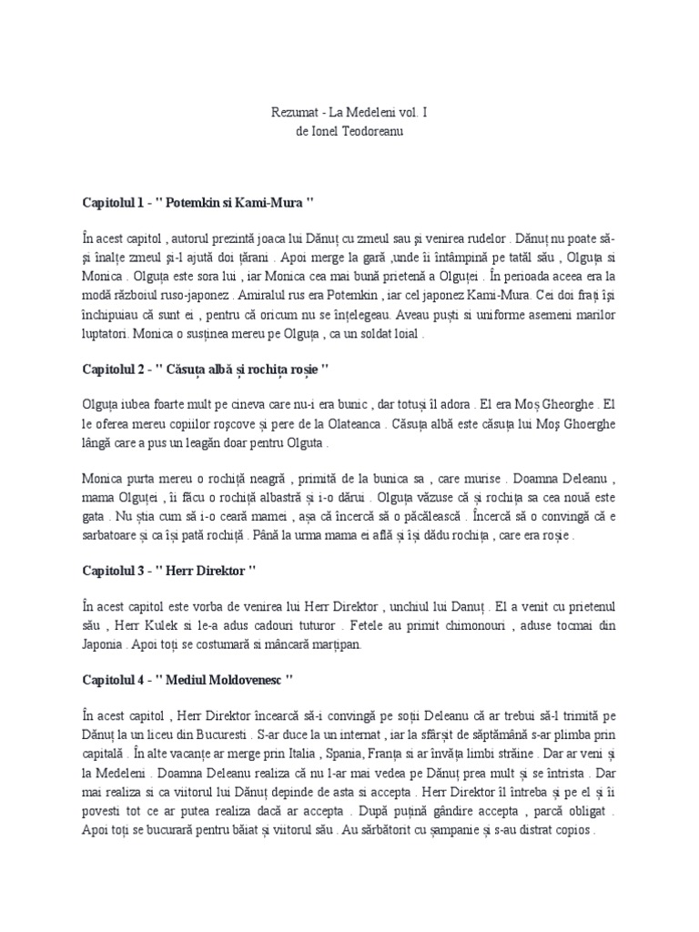 La Medeleni Volumul 2 Rezumat Source from : https://tanamangga.web.app/la-medeleni-volumul-2-rezumat.html Download la medeleni, vol.1, part.1.docx. Eficient si util,acest rezumat pentru care am primit nota 10 va poate ajuta foarte mult,deci in primul rand abonativa,după care dati like(aproape la fel de. Februarie 7, 2011 la 6:23 pm. Free online rezumat la medeleni vol 1 just for you. Copilul se naste fara o constiinta limpede de sine si fara simtul realului.