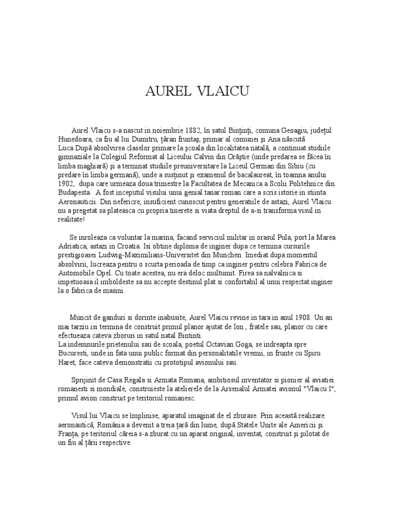 untuk "Informatii Despre Aurel Vlaicu"