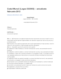 913 din 19 decembrie 2003; Codul muncii din romania legea 53 2003 actualizata 2014. Codul muncii actualizat 2012 (legea 53/2003), republicat şi renumerotat în monitorul.