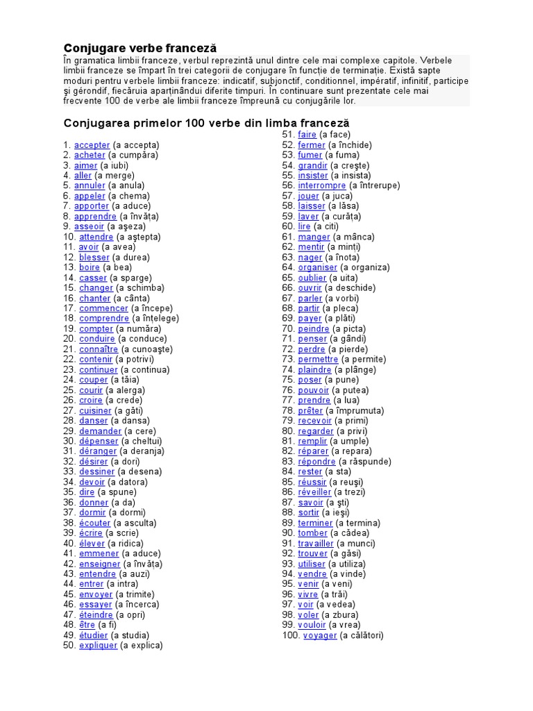 Nu pot să merg cu tine, sunt ocupat(ă) în seara asta. Iata raspunsul la solicitarea voastra privind numerele de la 1 la 100 in franceza, cu toate aprecierile noastre pentru aceia dintre voi care invata franceza fara profesor. The bab.la french verb conjugation will help you with that.